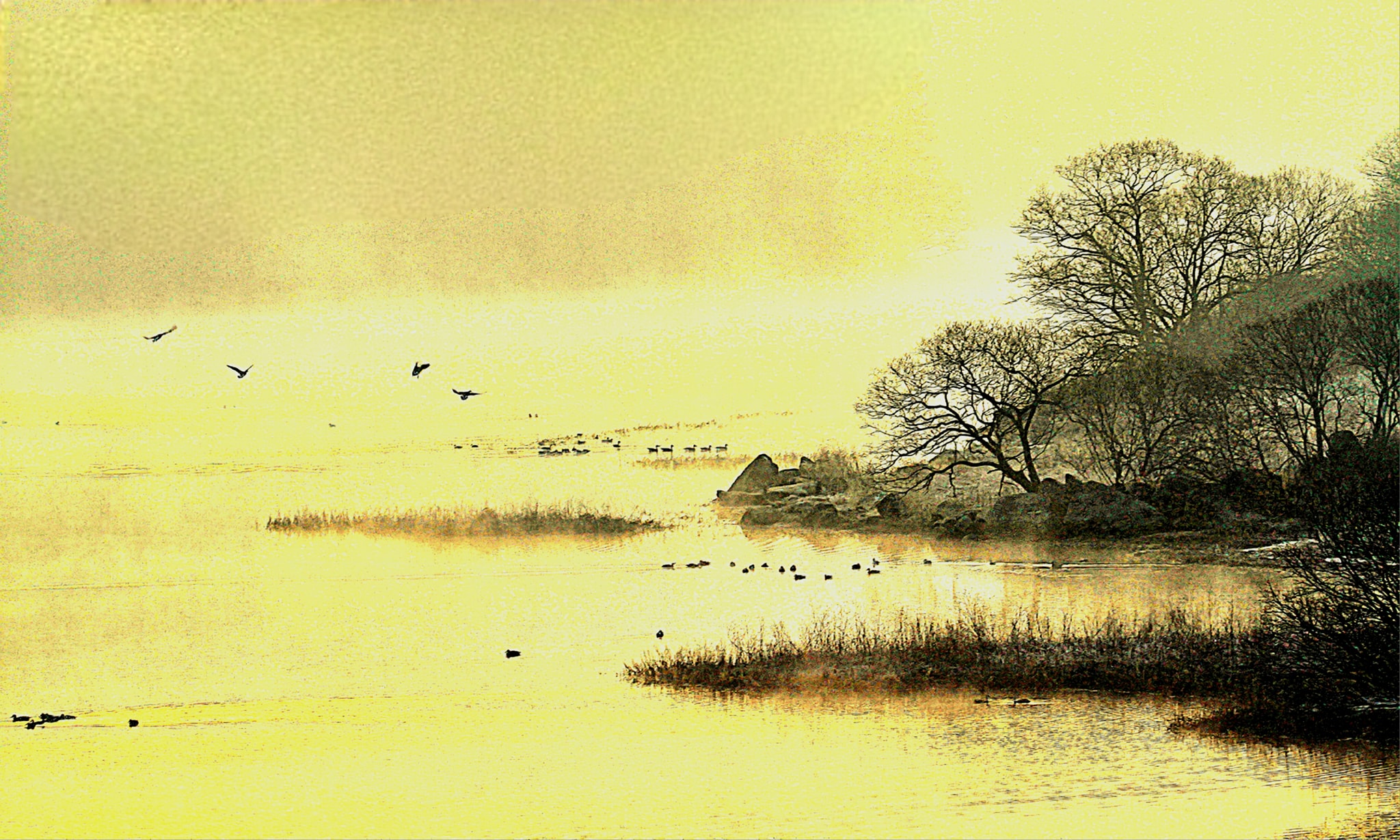 자욱한 물안개가 수면 위에서